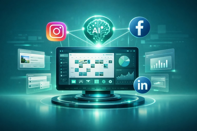 By combining creative design tools with automated publishing and scheduling, businesses can maintain a consistent online presence, share engaging content regularly, and manage their social media strategy with less manual effort.